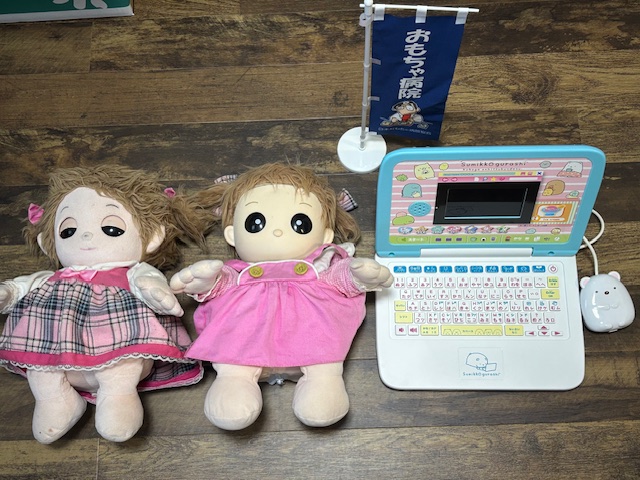 今回持ち込まれたおもちゃは、「おしゃべり人形ネルル」2体と「すみっコぐらしパソコン」でした。どちらも複雑な動作をするもので、またその場での分解が難しいので、入院治療とさせていただきました。